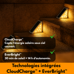 La lampe solaire LumaStep™ combine trois technologies exclusives — CloudCharge™, SunMax™ Conversion et EverBright™ — pour garantir une performance inégalée.