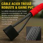 Un câble en acier tressé recouvert de PVC pour une sécurité à toute épreuve.