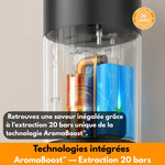 ✔️ AromaBoost™ — Technologie exclusive brevetée qui exploite 20 bars de pression pour libérer plus de saveurs et une crème riche.