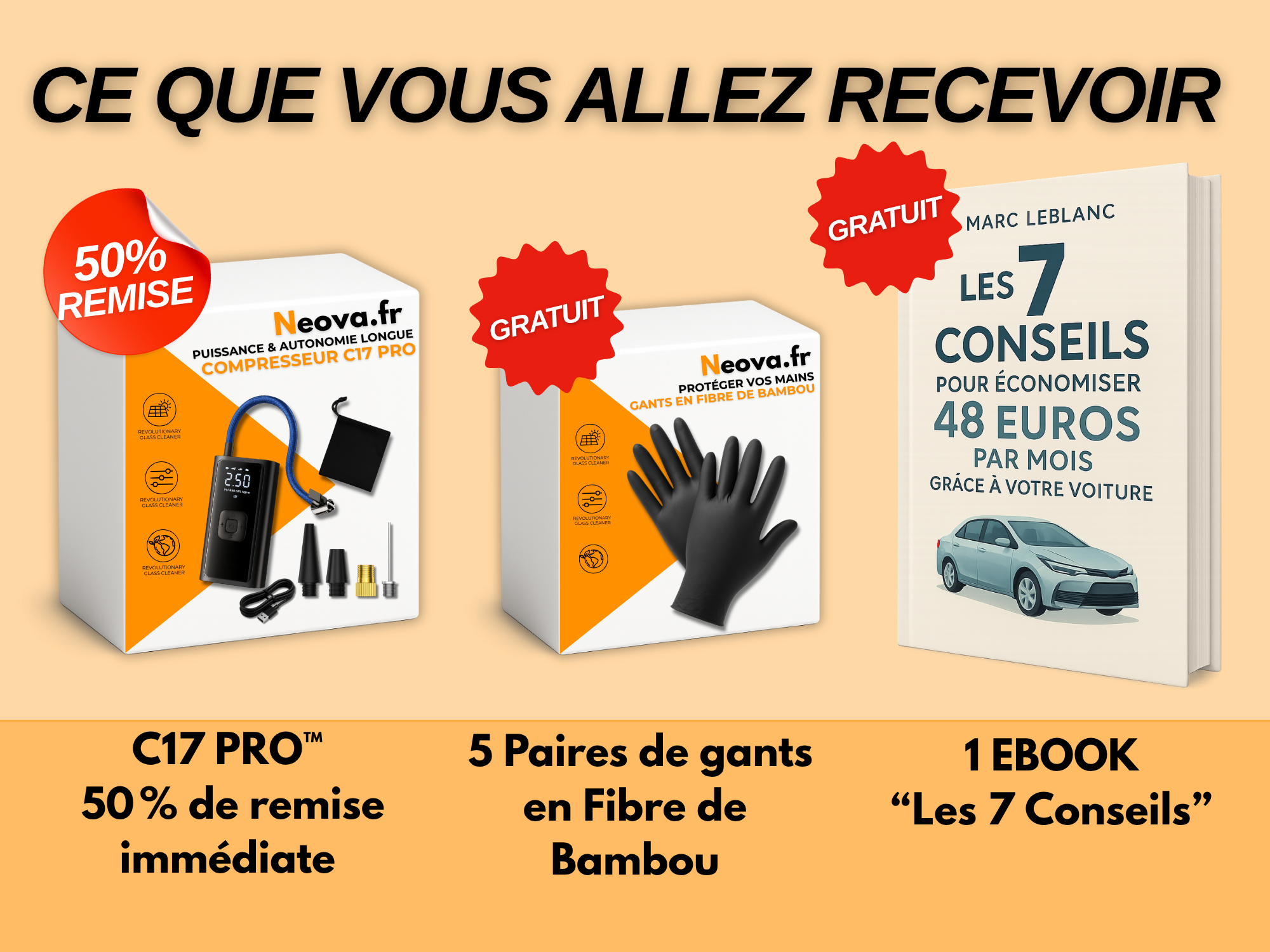 Oui, le C17 Pro™ est 100 % universel. Il est livré avec 5 embouts différents, spécialement conçus pour s’adapter aux pneus de voiture, de moto et de vélo, ainsi qu’aux ballons de sport, bouées et jouets gonflables.