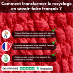 Ces matières sont certifiées GRS (Global Recycled Standard), un label reconnu mondialement qui garantit la traçabilité complète de la matière recyclée.
