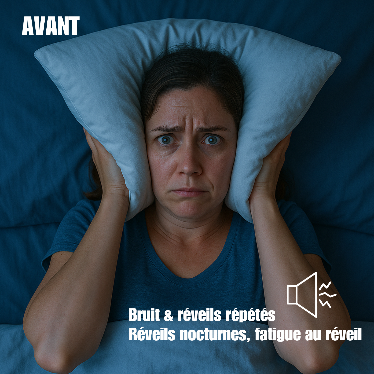 ✨ « J’ai retrouvé le sommeil dès la première nuit. Aucun inconfort, et le matin je n’ai plus cette sensation d’oreille comprimée. » — Claire, 36 ans